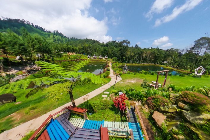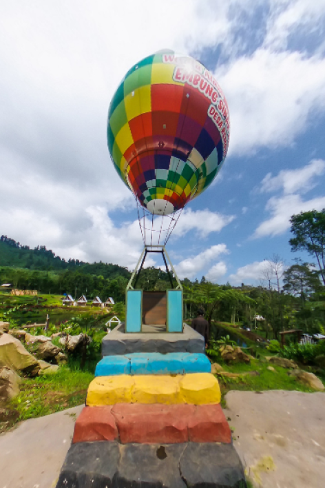 Wisata yang masih asri dengan aneka spot seperti balon udara, embung, kolam renang, dan jogging track hutan pinus.