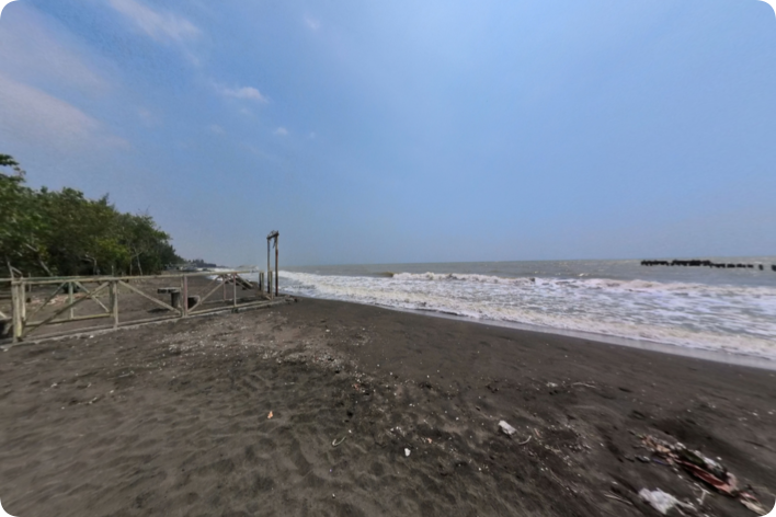 Sangat indah. Pantai yang luas dan panjang membuat kita di manjakan oleh bentangan luasnya air laut. Dan angin yang sumilir dengan menikmati swcangkir kopi.
